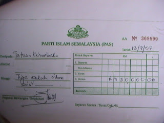 ini pula pendedahan yang dibuat oleh Saudara Hamdan Taha mengenai Skandal Rasuah berkenaaan projek balak di Perak.Resit diatas bernilai RM 30,000.00 kononya sumbangan ikhlas dari syarikat balak